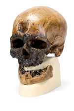 Cro Magnon Skull Homo sapiens. Representative of ice-age human. Year of discovery: 1868. Location of discovery: a cave in Viser valley in Southern France. Age: 20,000-30,000 years. New model mounted on unique base shaped to display jaw in the correct position and with depiction of the original finding on the back. £119.99 Inc. VAT |
